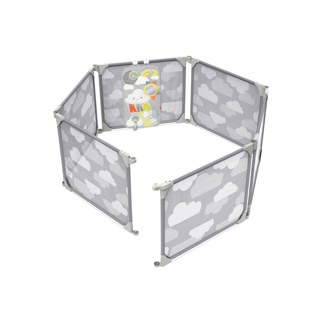 Quer esteja aprendendo a engatinhar ou dando os primeiros passos, no minuto em que os pequenos estão em movimento, os pais precisam de uma área à prova de bebês para mantê-los fora de perigo - e dar aos pais paz de espírito. O Playview expansível Enclosure de Skip Hop apresenta seis painéis de malha de impressão em nuvem que permitem a visibilidade entre pais e filhos, mantendo o bebê contido. O design de decoração amigável pode ser organizado como um pátio de jogos espaçoso e independente com um painel de porta de fácil abertura. Os arejados, porém robustos, painéis de estrutura de aço também funcionam juntos como uma divisória de ambiente com suportes de parede seguros (incluídos) em qualquer lugar que você escolher. Uma superfície de jogo removível com clipe com oito atividades envolventes cresce com o bebê - de brincar sentado a em pé.